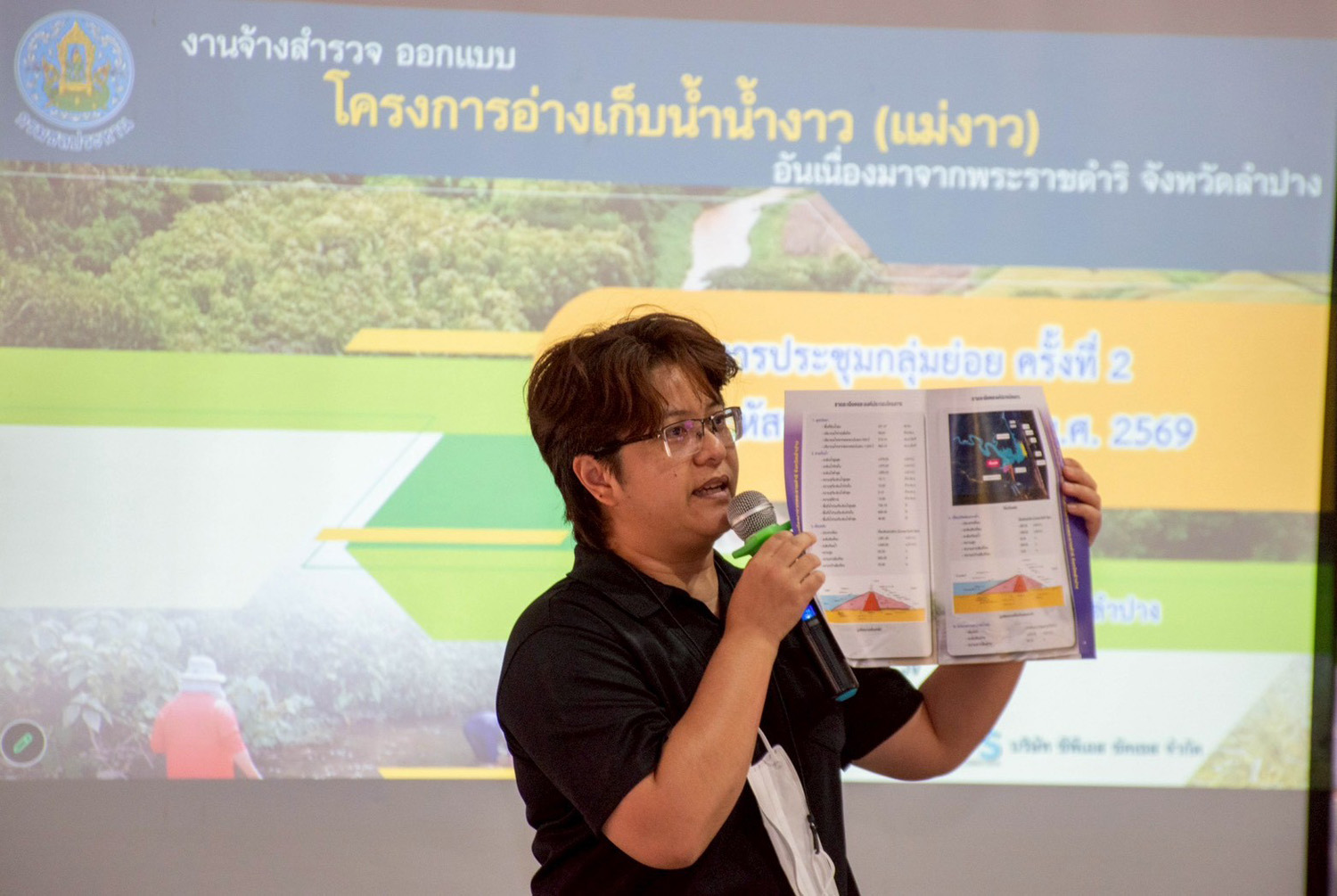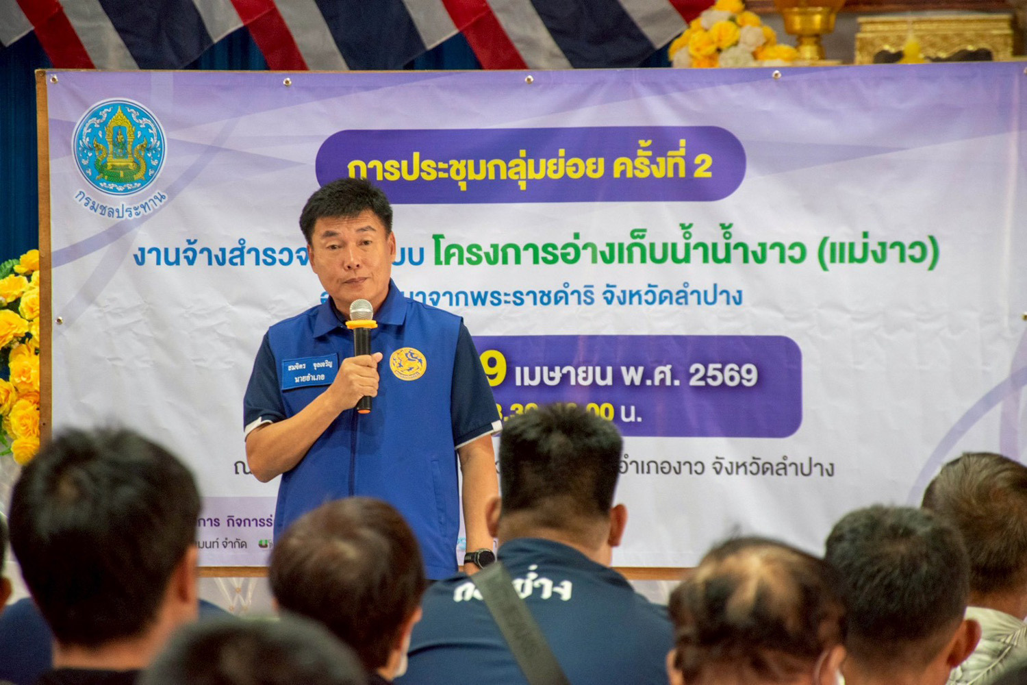 กรมชลประทาน ร่วมกับ กิจการร่วมค้า PGC JV จัดการประชุมกลุ่มย่อย ครั้งที่ 2 งานจ้างสำรวจ ออกแบบ โครงการอ่างเก็บน้ำน้ำงาว (แม่งาว) อันเนื่องมาจากพระราชดำริ จังหวัดลำปาง เมื่อวันที่ 9 เมษายน 2569 ณ หอประชุมที่ว่าการอำเภองาว ตำบลนาแก อำเภองาว จังหวัดลำปาง เพื่อนำเสนอข้อมูลการออกแบบโครงการ พื้นที่ที่ได้รับผลกระทบ ให้กับผู้ได้รับผลกระทบ หน่วยงานที่เกี่ยวข้อง ตลอดจนประชาชนในพื้นที่โครงการได้รับทราบ พร้อมทั้งรับฟังความคิดเห็นและข้อเสนอแนะต่าง ๆ เพื่อนำมาพิจารณาประกอบการดำเนินงานอันจะส่งผลกระทบต่อราษฎรในพื้นที่น้อยที่สุด