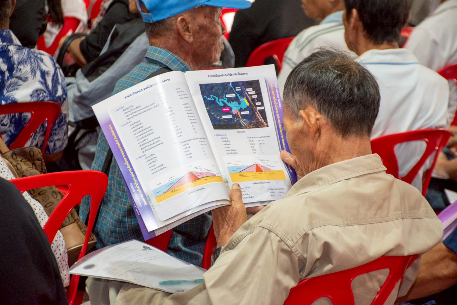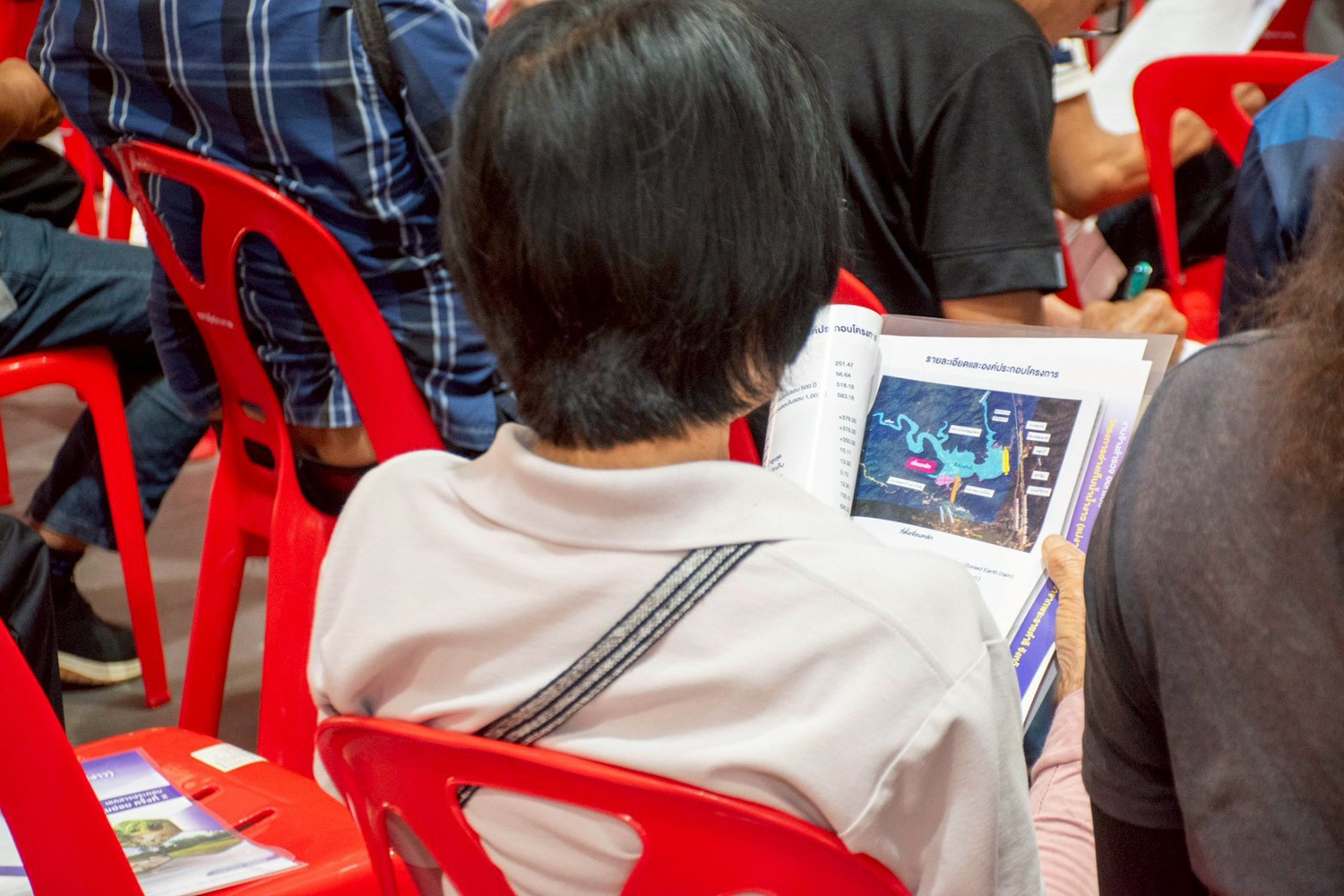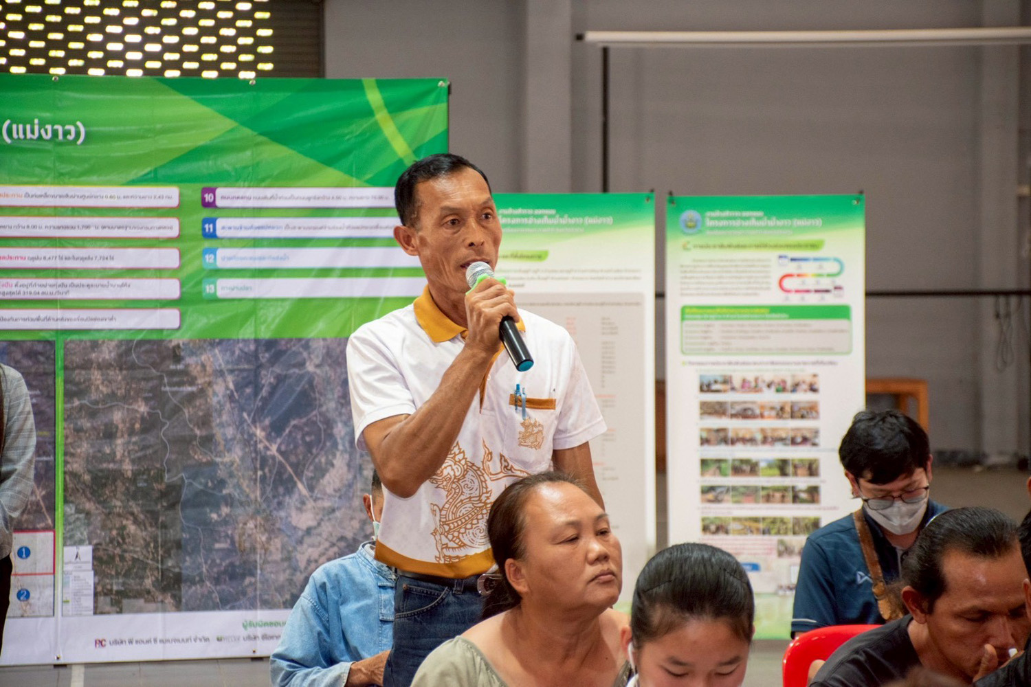 การประชุมในครั้งนี้ มีผู้เข้าร่วม ประชุมทั้งสิ้น 150 คน โดยได้รับเกียรติจากนายสมจิตร จุลเจริญ นายอำเภองาว เป็นประธานเปิดการประชุม และมีนายเอกลักษณ์ คงยนตร์ หัวหน้าฝ่ายออกแบบเขื่อนที่ 1 สำนักออกแบบวิศวกรรมและสถาปัตยกรรม กรมชลประทาน เป็นผู้กล่าวรายงาน พร้อมกันนี้ยังมี นายพรมงคล ชิดชอบ ผู้อำนวยการกองพัฒนาการบริหารจัดการน้ำและการมีส่วนส่วนร่วม กรมชลประทาน และนายศิริพงษ์ จิตรีพิทย์ ผู้อำนวยการส่วนออกแบบเขื่อน สำนักออกแบบวิศวกรรมและสถาปัตยกรรม กรมชลประทาน ร่วมตอบข้อซักถาม และให้ข้อมูลกับผู้เข้าร่วมประชุม